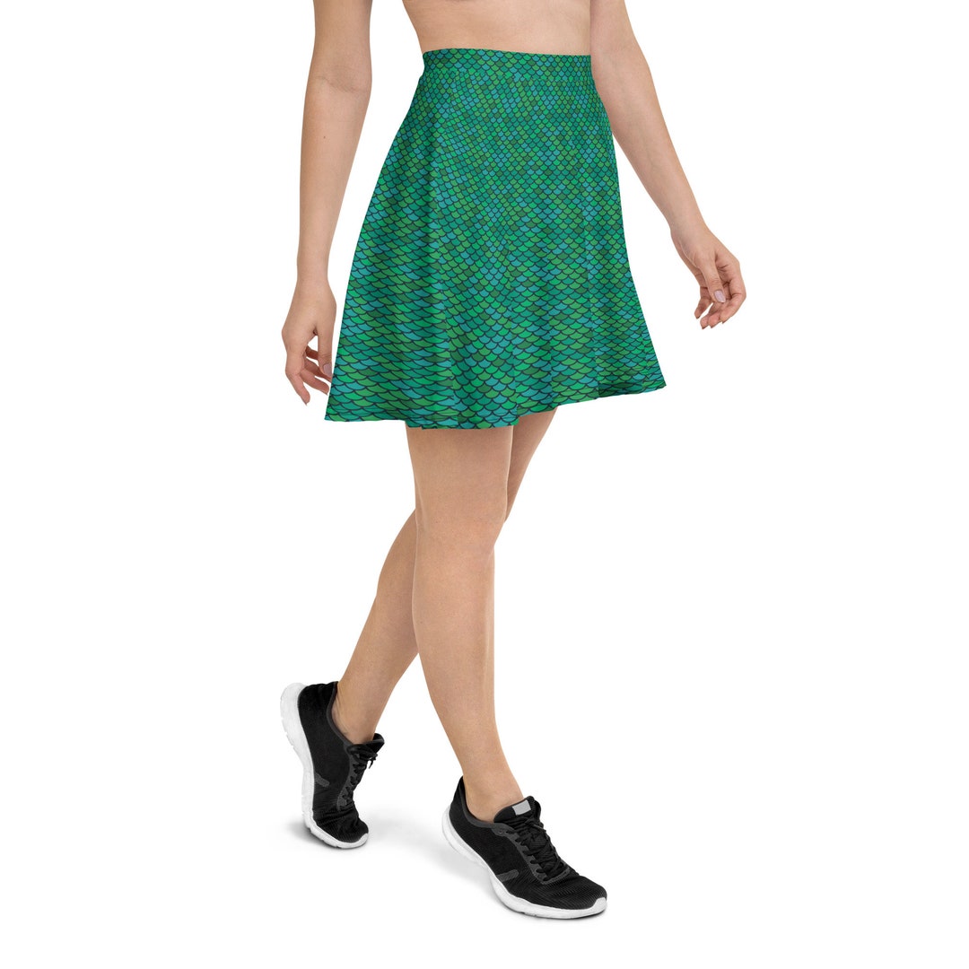 Green Mermaid Skater Skirt For Women Fish Scale Pattern Print Etsy Denmark